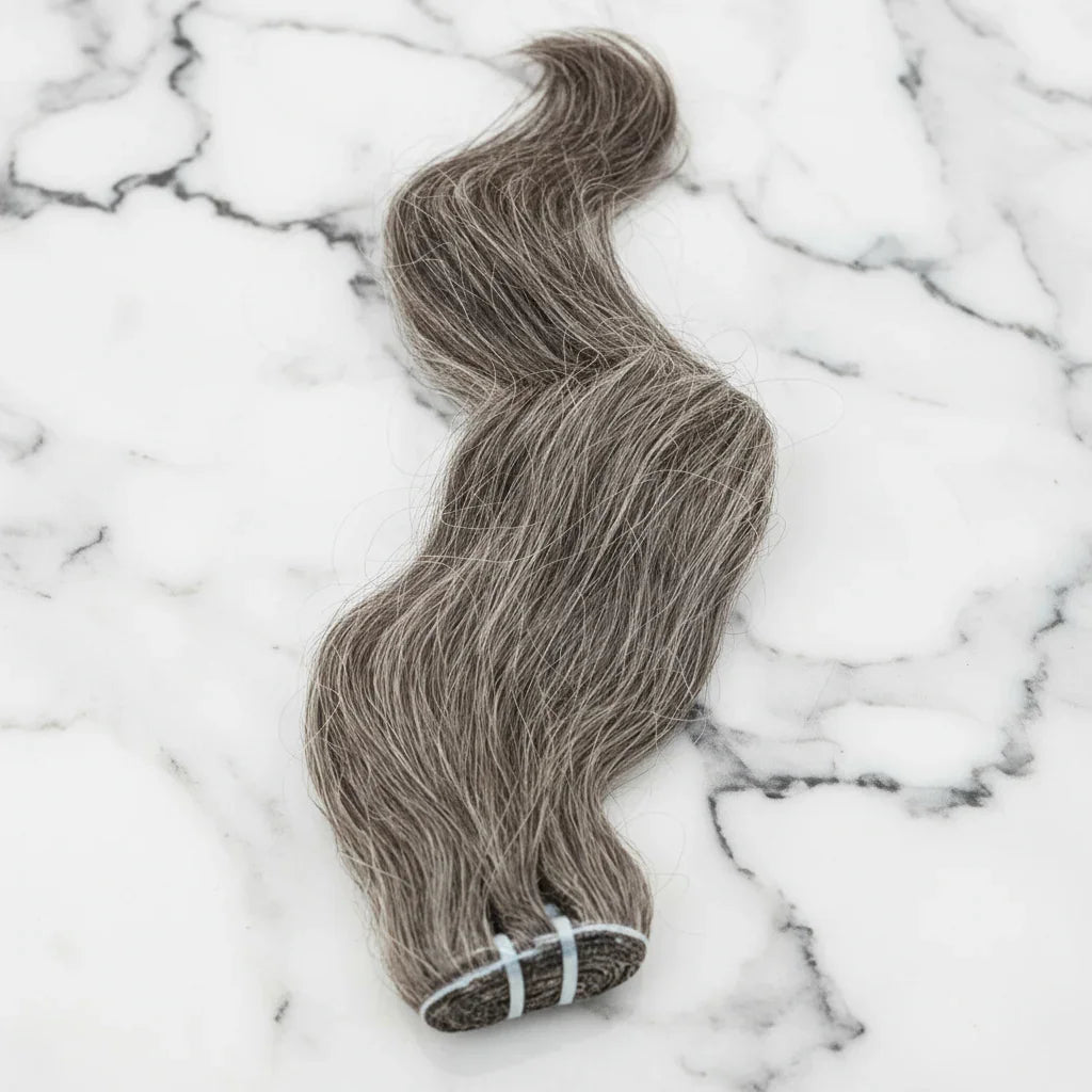 The Nikki Smith Hair Collection Signature Raw Natural Gray Hair Extensions, the epitome of elegance and longevity. Crafted from the finest raw hair, these extensions seamlessly blend with your natural hair, adding volume and length with a touch of sophisticated gray.